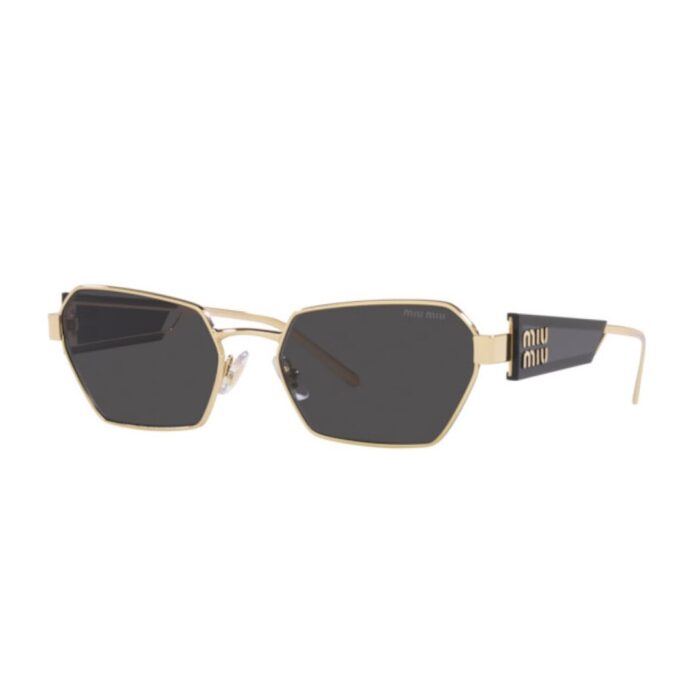 عینک آفتابی Miu Miu MU 53WS – فریم فلزی نامنظم طلایی یا مشکی، لنز خاکستری/بنفش، ابعاد 58-18-135 mm، سبک لوکس و جسورانه برای بانوان.