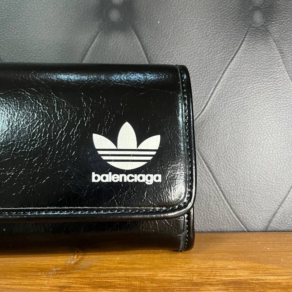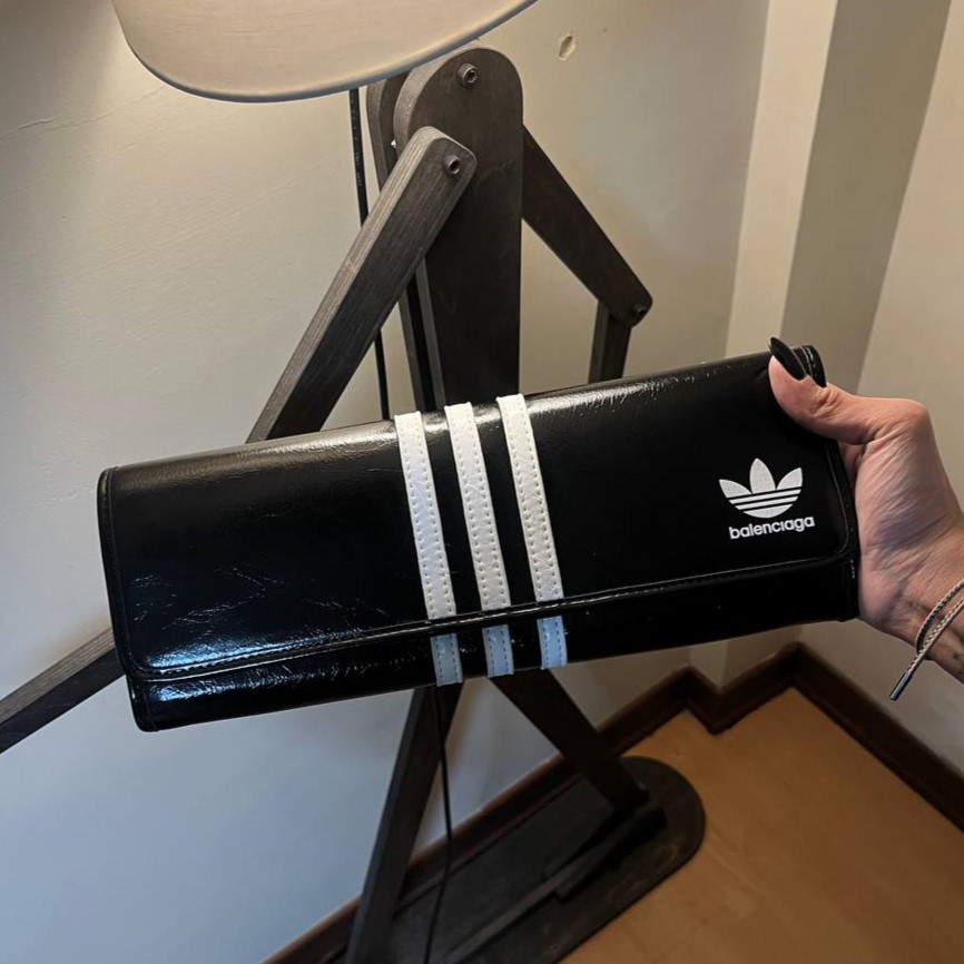 کیف کمری Balenciaga × Adidas Wallet on Strap یکی از کمیابترین آیتمهای همکاری بالنسیاگا و آدیداس است که با چرم با کیفیت ۱۰۰٪ سیم اورجینال، لوگوهای برجسته Trefoil و ۳-Stripes و یراقآلات نقرهای ضدزنگ ساخته شده.