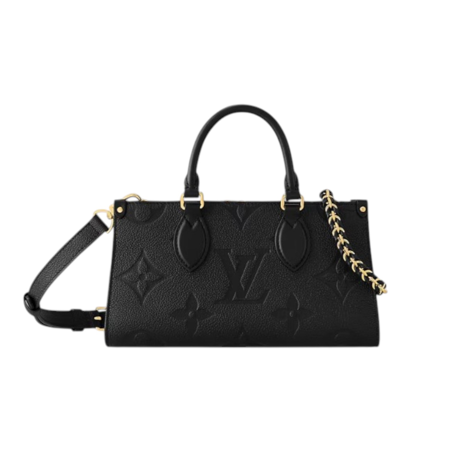 کیف دستی زنانه Louis Vuitton OnTheGo East-West (مدل M23640): طراحی افقی جمعوجور با چرم Monogram Empreinte مشکی یا کرم، دسته و بند قابل تنظیم، فضای زیپدار جذاب، آستر میکروفایبری و سختافزار طلایی—ترکیبی از لوکس بودن و کارآمدی.