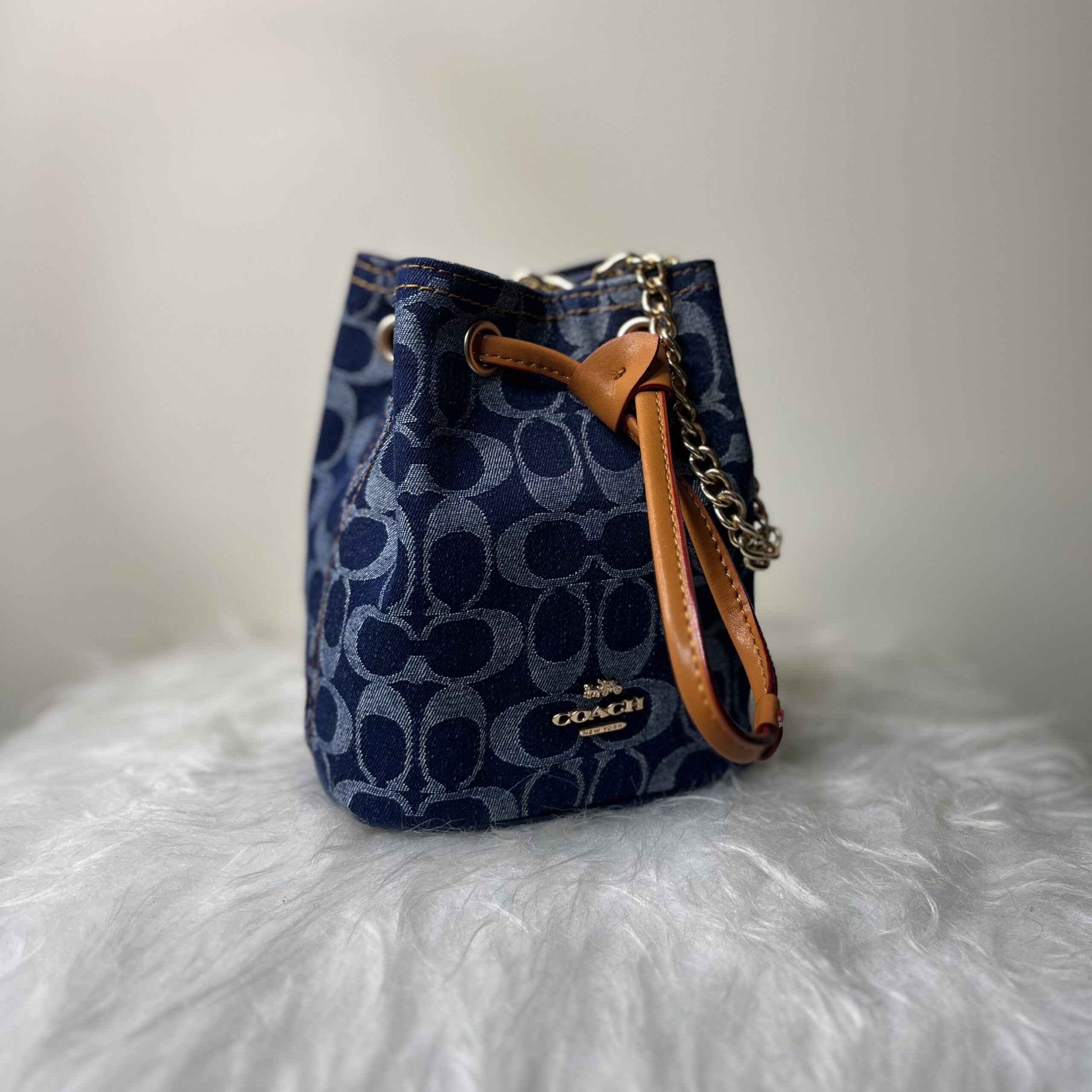 کیف مچی زنانه Coach مدل CZ031 با طراحی بند کشی، ترکیب جین امضادار و چرم واکتا، گزینه‌ای شیک و پایدار برای استفاده روزمره و مجالس.