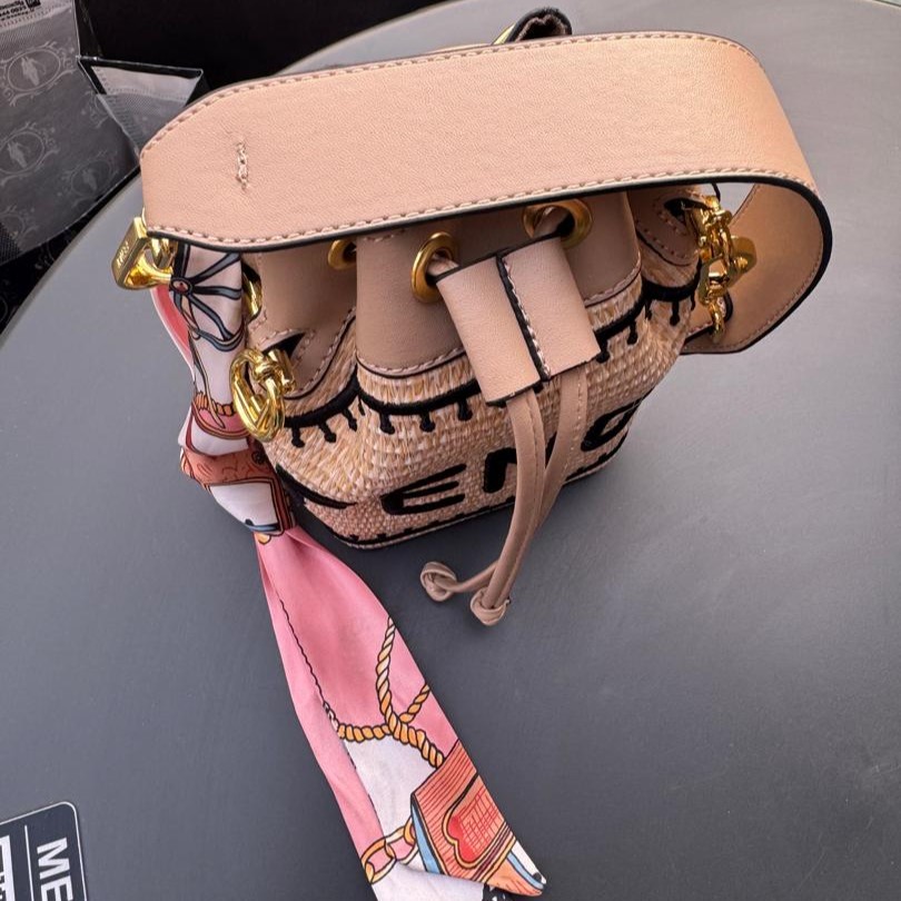 کیف Fendi Mon Tresor Mini Bucket یک کیف دستی کوچک و شیک است که از الیاف نخی به رنگ بژ ساخته شده است. این کیف دارای طرح مونوگرام FF مخملی و جزئیات چرمی قهوهای است. با بندهای قابل تنظیم، میتوان آن را بهصورت دستی یا کراسبادی استفاده کرد. این کیف با طراحی منحصربهفرد و کیفیت بالای ساخت، انتخابی ایدهآل برای استفاده روزمره و مناسبتهای خاص است. کیفیت کار مستر